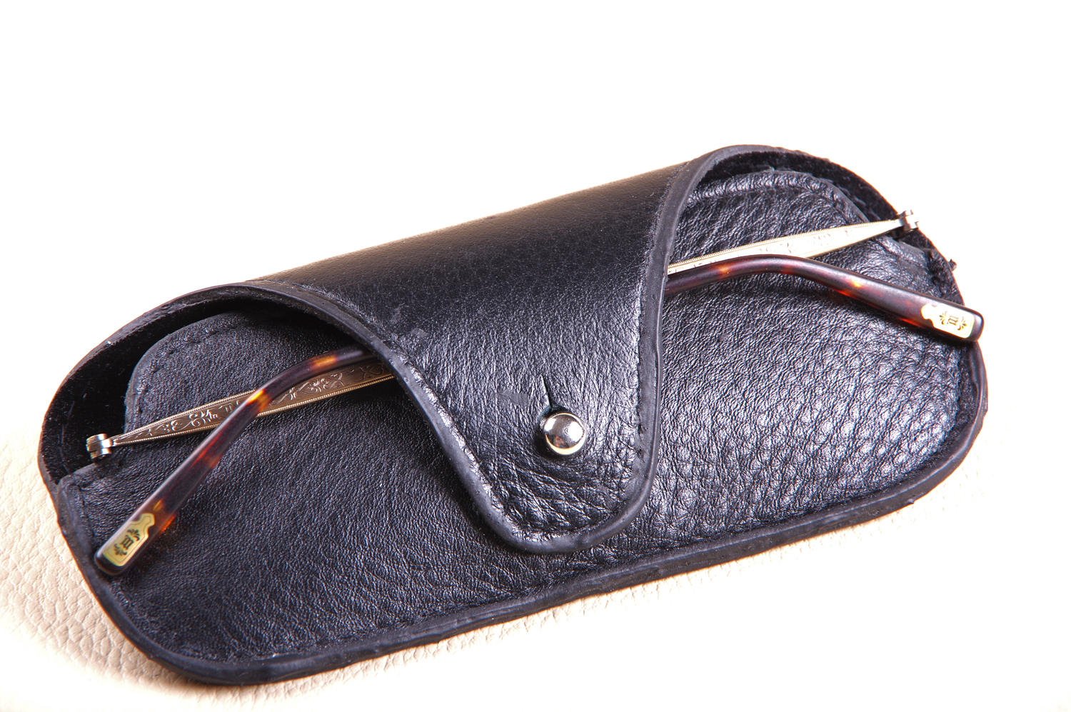 De couleur gun brossé, la monture reçoit une armature amovible munie de coques de couleur bleue. La monture Matsuda M2809 H peut se porter avec ou sans ses coques latérales. Deux étuis en cuir qui protègent la monture et ses coques, accompagnent le livret de présentation dans le coffret en bambou.