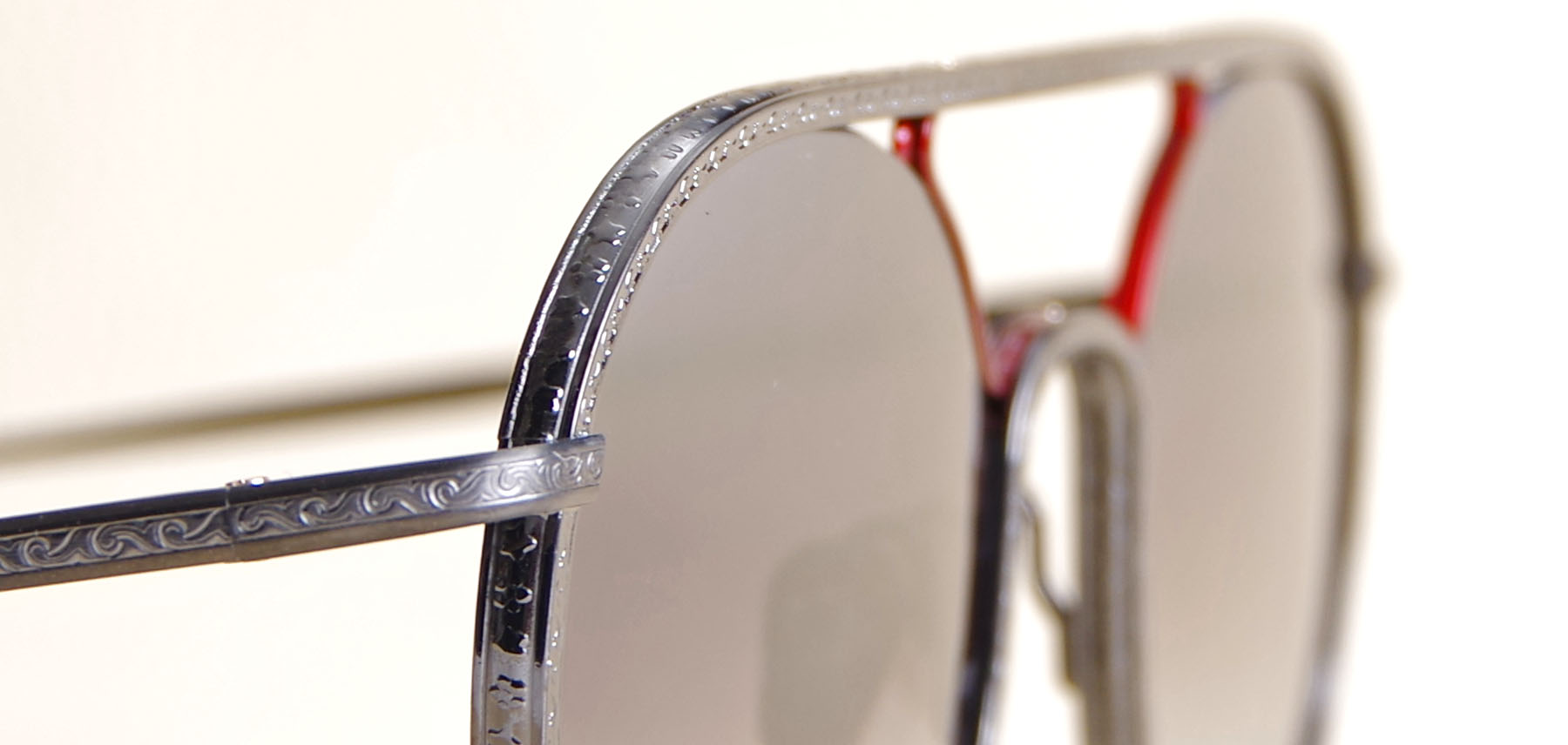 En titane de couleur gun, finement ciselé, rehaussé de rouge au niveau du pont, le designer Kenzo TAKADA nous gratifie d'une solaire d'exception avec le modèle Acrux.