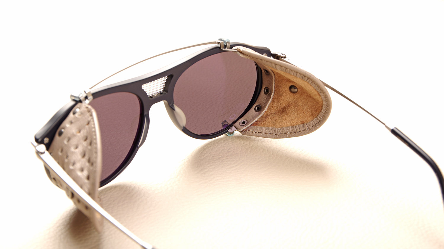 Avec ses coques en cuir amovibles, la monture MATSUDA 2031 s'inspire des modèles de glaciers portés par les alpinistes de haute montagne. La petite grille centrale permet d'éviter les phénomènes de buée à l'intérieur des verres. Ceux-ci reçoivent également un léger effet miroir argent. Elle est livrée dans un magnifique coffret en bambou contenant un étui rigide pour la monture et un autre étui souple pour les coques amovibles.