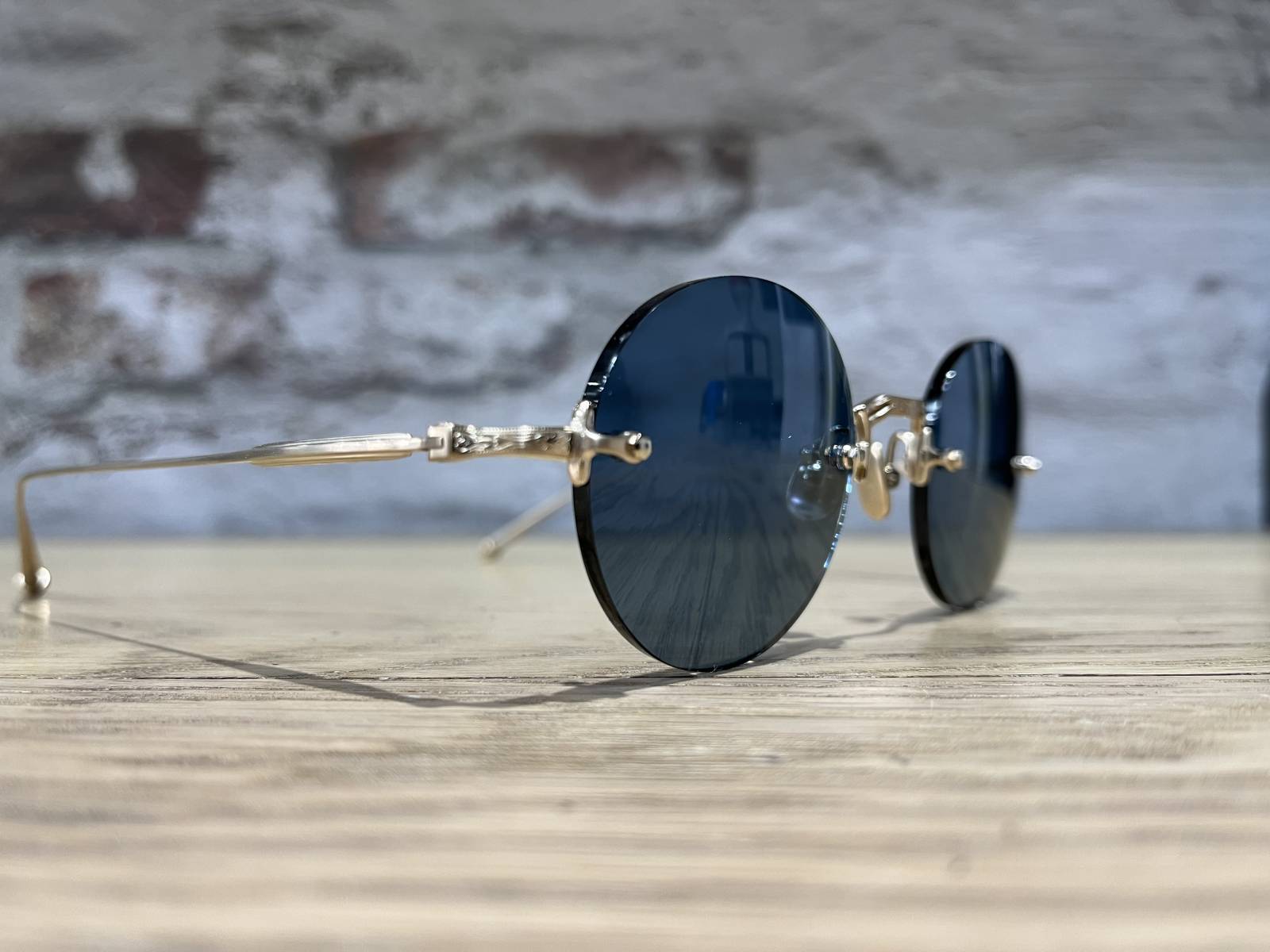 La MATSUDA M3105 arbore ici sa couleur brushed gold (BG) et des verres gris bleu qui donnent un résultat des plus esthétiques. Les verres sont agrémentés d'un traitement antireflets en face arrière pour un maximum de confort et de protection visuelle.