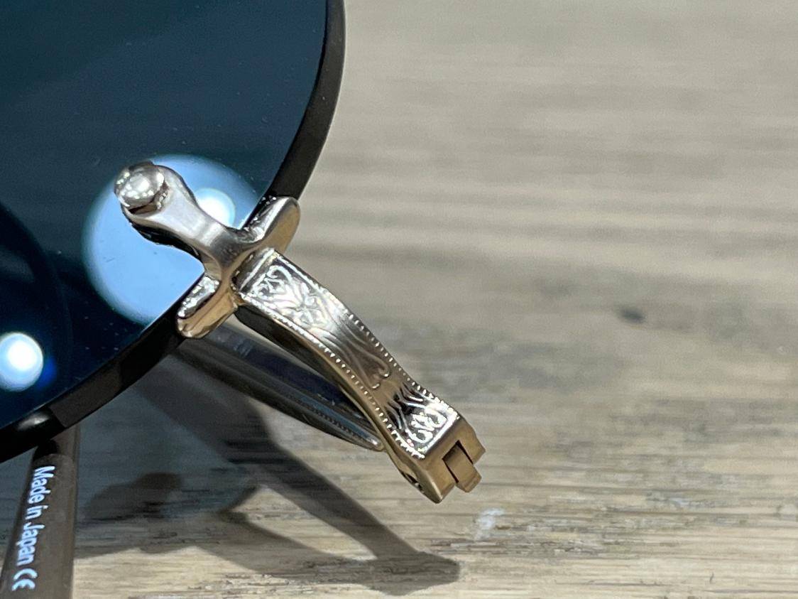 Tous les éléments de ces sublimes lunettes de soleil sont ciselés dans un titane de la plus belle qualité : le pont central, les tenons et également les branches !