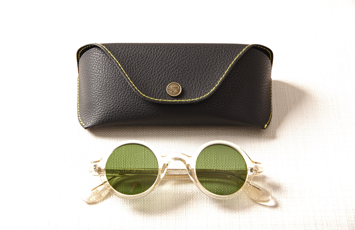 Ce côté néo rétro est d'abord dû à sa forme ronde parfaite. Il résulte également de sa conception en acétate et de sa couleur champagne. Enfin, pour parachever l'esprit vintage de cet ensemble ne restait plus qu'à y ajouter des verres de couleur verte donnant à l'ensemble un parfum des années 70 ...