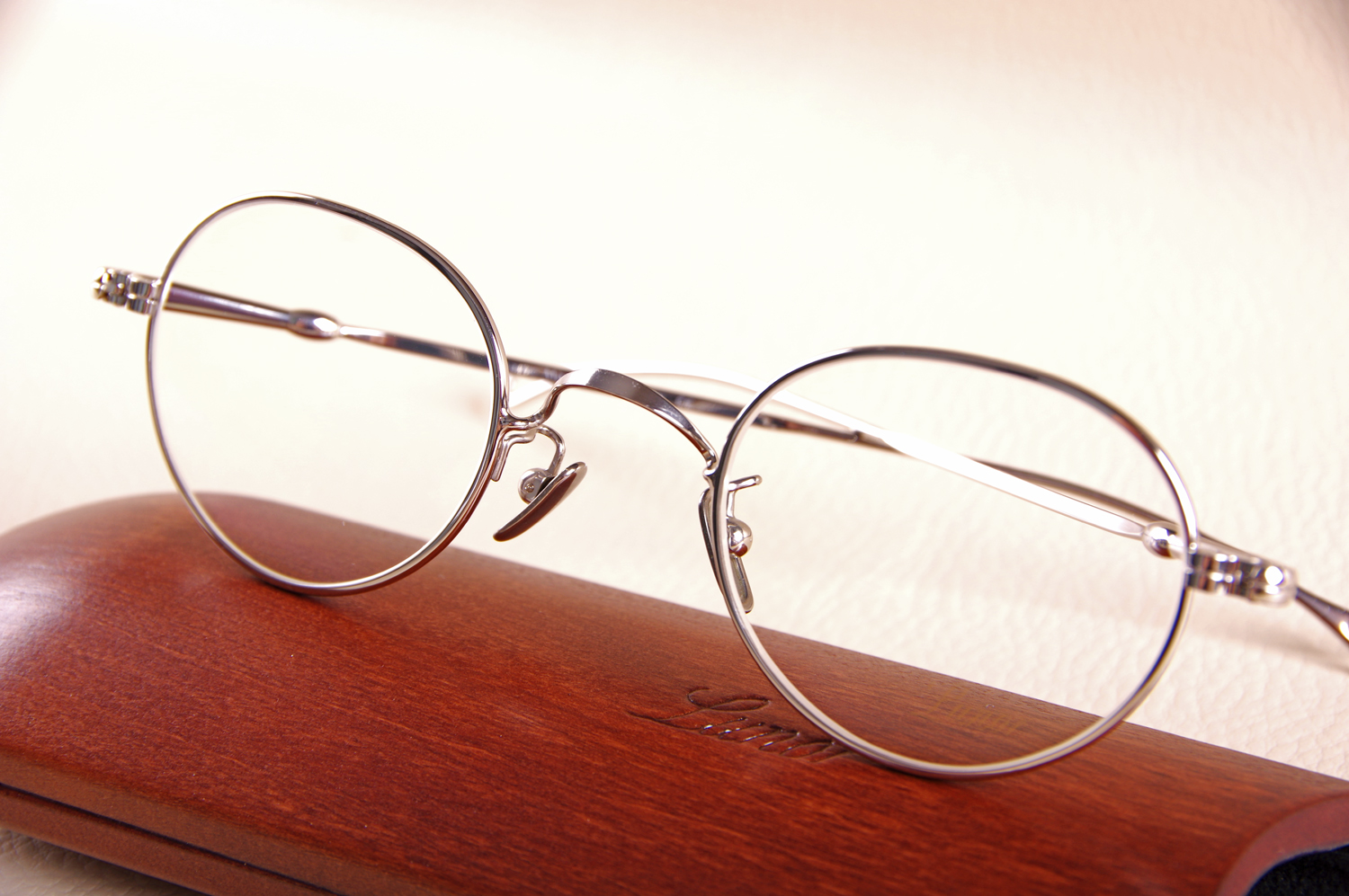Véritable bijou à la finition irréprochable, la Maison LUNOR a dessiné pour cette magnifique LUNOR 1 10 PP un étui unique en bois habillé de feutrine pour protéger les verres.
