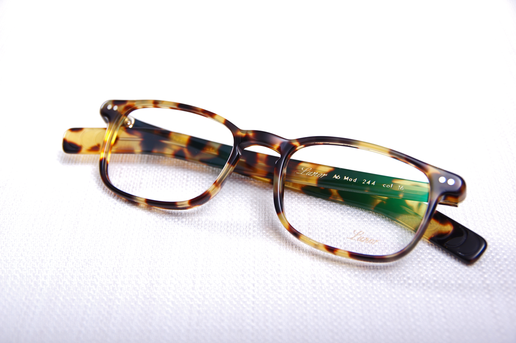 Elle produit même l'acétate de cellulose dans laquelle elle découpe ensuite ses montures produisant ainsi des couleurs uniques, comme cette monture LUNOR 244 16 en écaille marbrée présentée ci-contre.