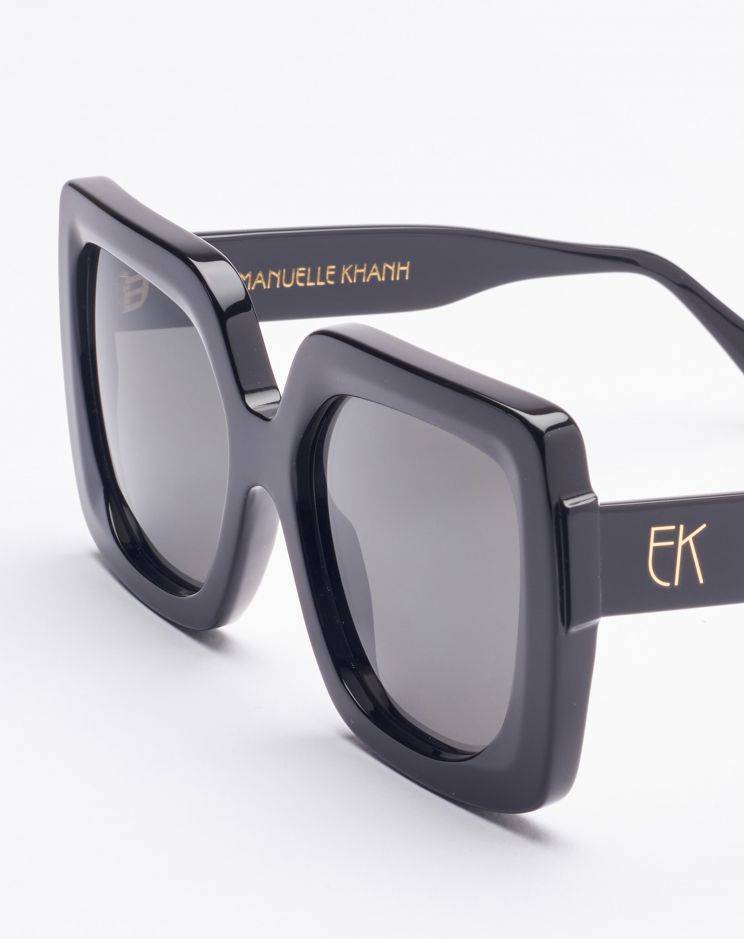 Elle s'associe alors aux meilleurs ateliers du Jura et imagine une gamme de montures marquées, volumineuses, aux lignes franches et immédiatement identifiables. En quelques années, les lunettes de soleil Emmanuelle Khanh deviennent iconiques.