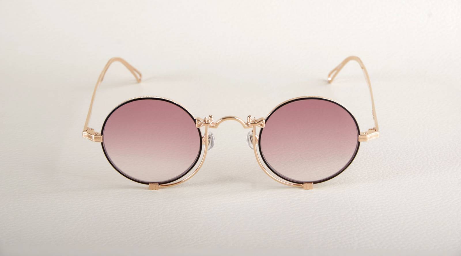 Cette paire de lunettes de soleil haut de gamme se voit équipée de verres ultra plat de couleur rose dégradé.