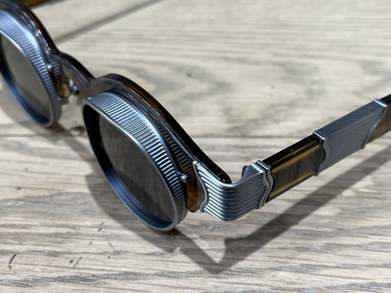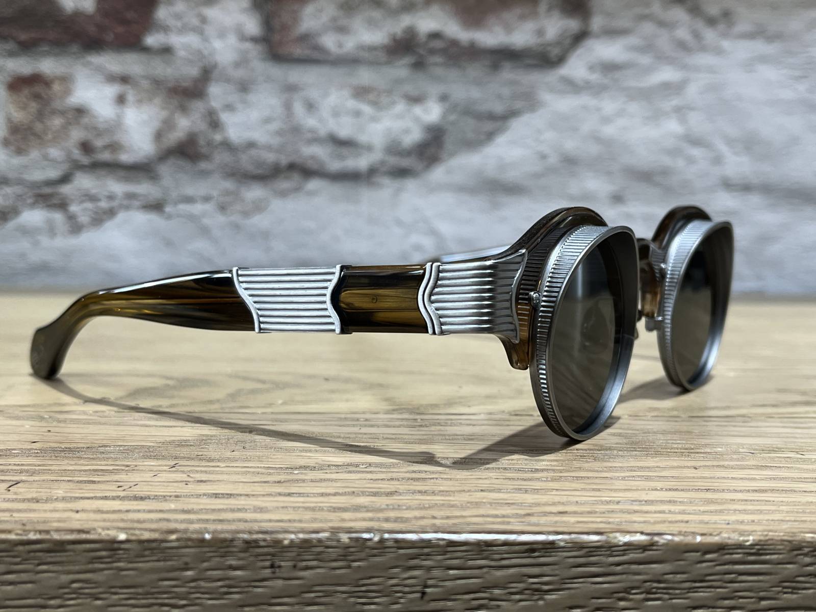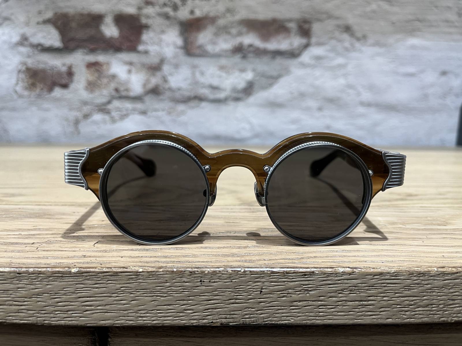 D'inspiration steampunk, cette sublime paire de lunettes MATSUDA est COLLECTOR. Elle reprend la forme de l'iconique modèle 2903H mais avec une fabrication combinant acétate très haut de gamme et titane finement ciselé.