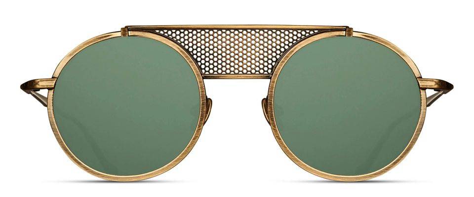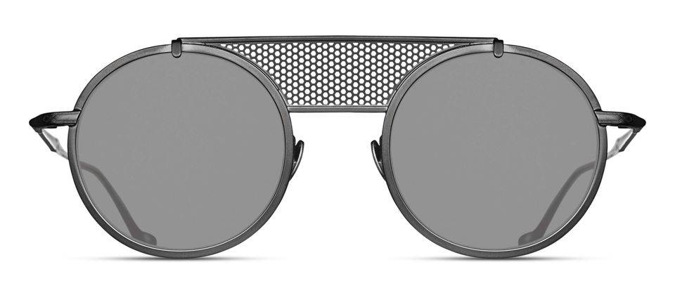 Les branches, en titane d'un seul tenant, sont habillées d'une très discrète laque. On retrouve d'autres détails ouvragés sur cette magnifique lunette de soleil, tels que le guillochage du cercle ou les plaquettes gravées du M de Matsuda ...