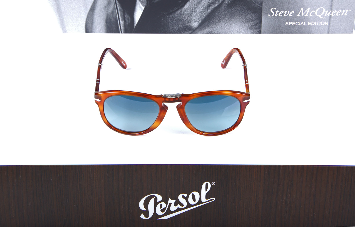 Pour ses 100 ans, la marque PERSOL réédite ce modèle légendaire équipé de verres bleus polarisés en cristal. La PERSOL 714 SM en édition spéciale Steve McQueen est présenté ici dans le colori le plus emblématique 96/S3 et en taille 52.